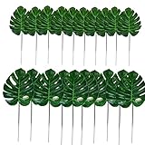siawadeky モンステラの葉 20枚セット 熱帯の葉 茎付き 人工観葉植物 ヤシの葉 ソテツの葉 造花 フェイクグリーン 壁掛け 人工葉っぱ 熱帯のパーティー デコレーション インテリア 宴会の装飾 撮影小道具 長さ34cm 39cm